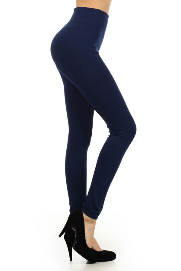 Elevate your everyday wardrobe with these ultra-smooth solid color seamless leggings—an essential layering piece that adds comfort, style, and versatility to any outfit. Designed with a sleek long-leg silhouette and a supportive 3" waistband, they offer a flattering mid-rise fit that hugs your curves without restriction. The seamless construction ensures a smooth, chafe-free feel, while the soft, stretchy fabric moves effortlessly with your body. Perfect for layering under dresses, tunics, or oversized tops, these leggings bring a pop of color and all-day comfort to your look. One size fits most.